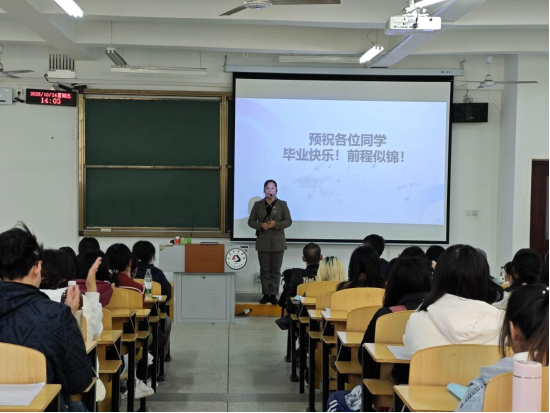 宣讲会上,黄群丹老师围绕毕业生高度关切的论文撰写规范、实习实践安排、职业发展规划等核心事项展开细致讲解。她系统梳理了毕业季关键时间节点与任务清单,为同学们厘清前行思路、化解潜在困惑,同时向即将奔赴人生新征程的22级学子送上真挚的毕业祝福与殷切期许。