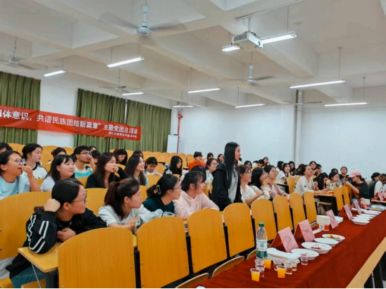 为铸牢中华民族共同体意识教育,9月24日,外国语学院精心组织主题党团日活动,学院学生党员、共青团员及2025级新生青年代表齐聚一堂,以“沉浸式文化体验”为载体,在美食分享、知识学习、互动游戏与心声交流中,共赴一场民族团结的青春之约。