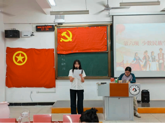“从蒙古族的那达慕大会到藏族的雪顿节,从维吾尔族的特色服饰到壮族的饮食文化,每一个民族符号背后都是厚重的历史传承。”在民族文化知识讲解环节,熊一鸣同学通过PPT演示与视频播放相结合的方式,生动讲述了蒙古族、藏族、维吾尔族、壮族、回族等多个民族的历史起源、地理分布、传统节日与文化符号。详实的内容、鲜活的案例,让在场青年对各民族文化有了更系统、更深入的了解,现场不时响起“原来这些文化细节藏着这么多故事”的感慨,学习热情持续高涨。