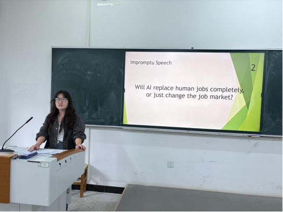 定题演讲:围绕“Strike the waves”(乘风破浪)主题,选手们结合个人经历与时代思考,从“突破成长困境”“勇担青年使命”等角度切入,用流畅的英文表达传递观点,情感真挚且富有感染力,展现出扎实的语言积累。