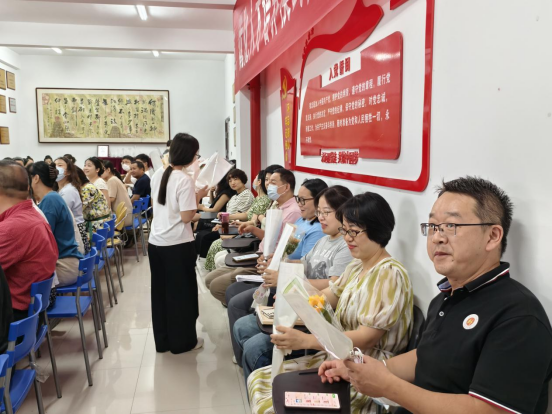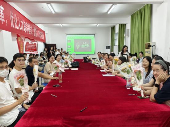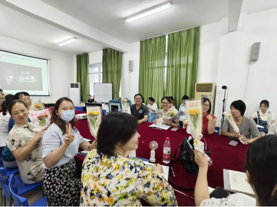 9月10日中午,在老师们召开会议前,现场播放了精心制作的教师节主题PPT,播放结束后,心协成员们手捧提前准备好的鲜花,依次走到每位老师面前,将鲜花轻轻递到老师手中,同时轻声道上“老师,教师节快乐”——简单的话语,却承载着学生们最纯粹、最真挚的心意。